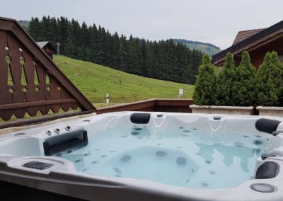 Deux places de parking sont à disposition, dont une couverte. Tout le confort haut de gamme est inclus : Wi-Fi, jacuzzi six places, sauna infrarouge, deux cheminées authentiques et un accès direct par ascenseur.