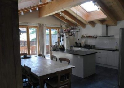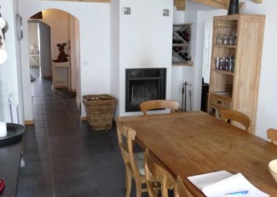 Dès l’entrée, un vaste hall mène à une grande cuisine américaine entièrement équipée, prolongée par une salle à manger lumineuse avec terrasse. Le séjour, élégant et chaleureux grâce à sa cheminée authentique, s’ouvre également sur une terrasse donnant accès à une chambre avec 2 lits superposés et son propre balcon.