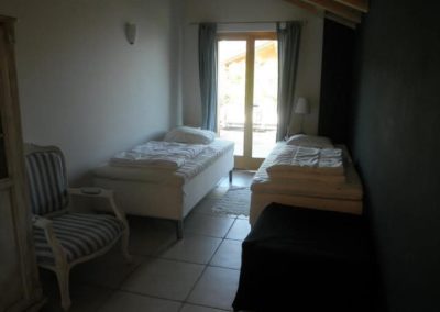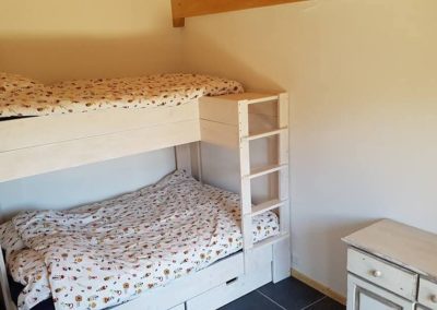 Depuis le hall, vous trouverez une chambre avec lit double et deux chambres avec 2 lits simples chacune, permettant une organisation idéale pour les familles ou groupes d’amis.
